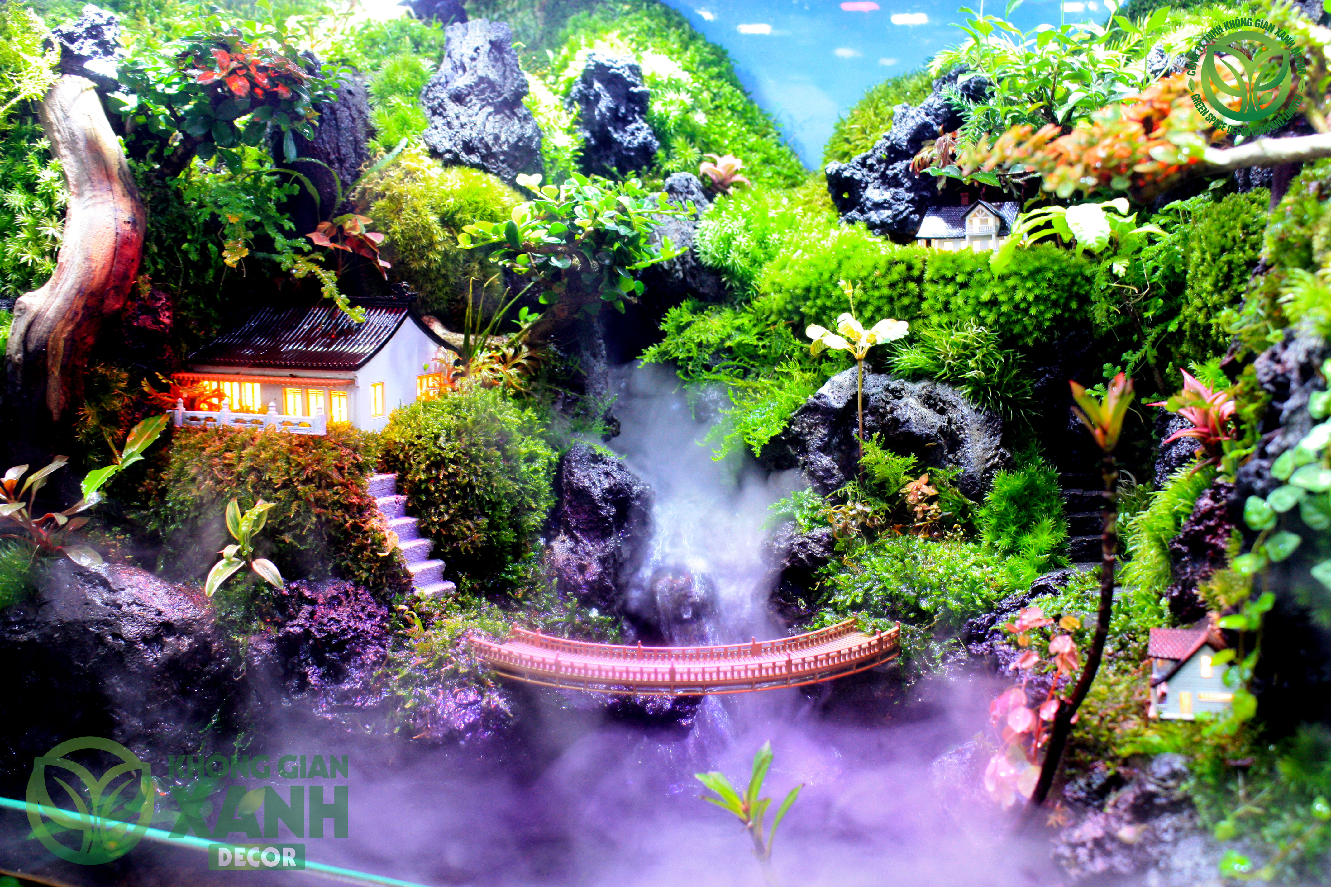 - Tường thực vật tạo layout từ foam mius gia cố vĩ nhựa chắc chắn