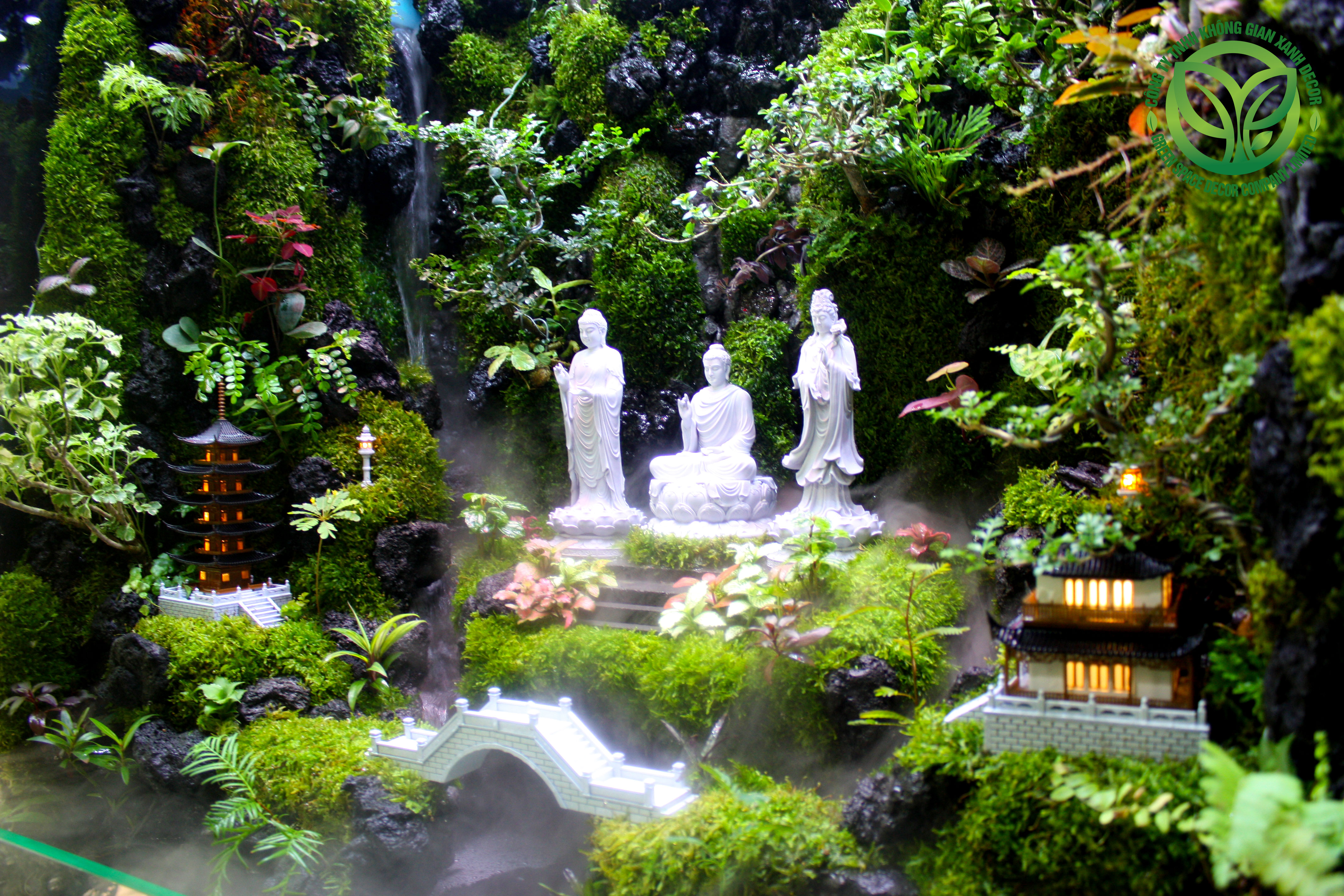 - Tường thực vật tạo layout từ foam mius gia cố vĩ nhựa chắc chắn