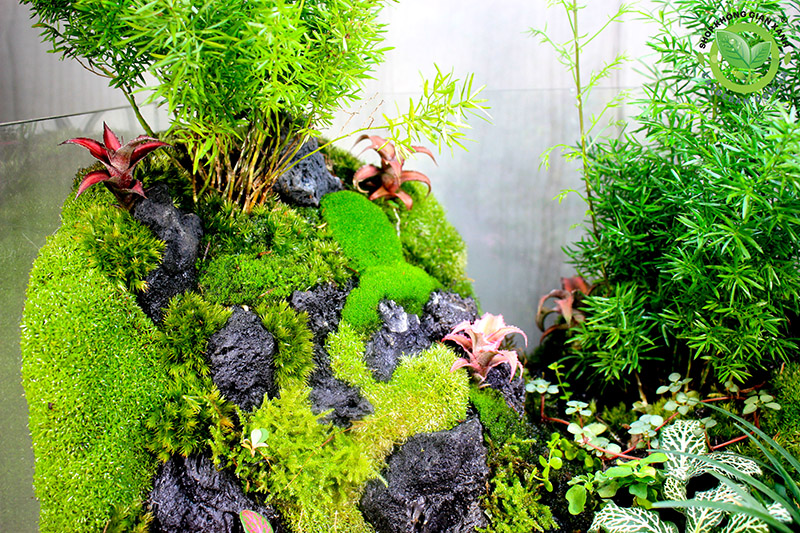 Ánh sáng có thể để trong nhà dưới ánh đèn led, nhưng các bạn nên cho cây có ánh sáng tự nhiên thì càng tốt , nhưng không để trực tiếp dưới ánh nắng mặt trời, mà phải để nơi ánh sáng khuếch tán. Tuy nhiên với các loại cây được bố trí trong terrarium này thì có thể để được trong phóng máy lạnh, nơi không có ánh nắng mặt trời mà cây vẫn sống tốt.