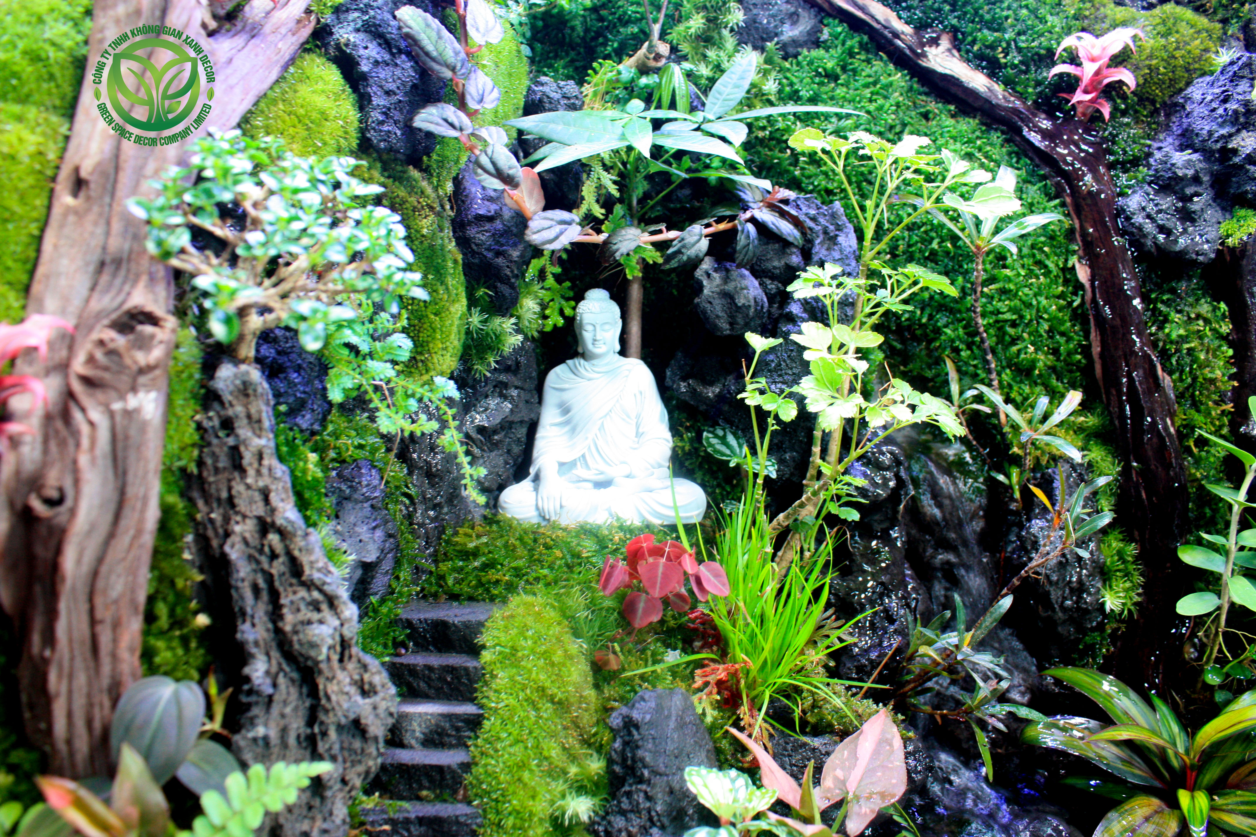 - Tường thực vật tạo layout từ foam mius gia cố vĩ nhựa chắc chắn
