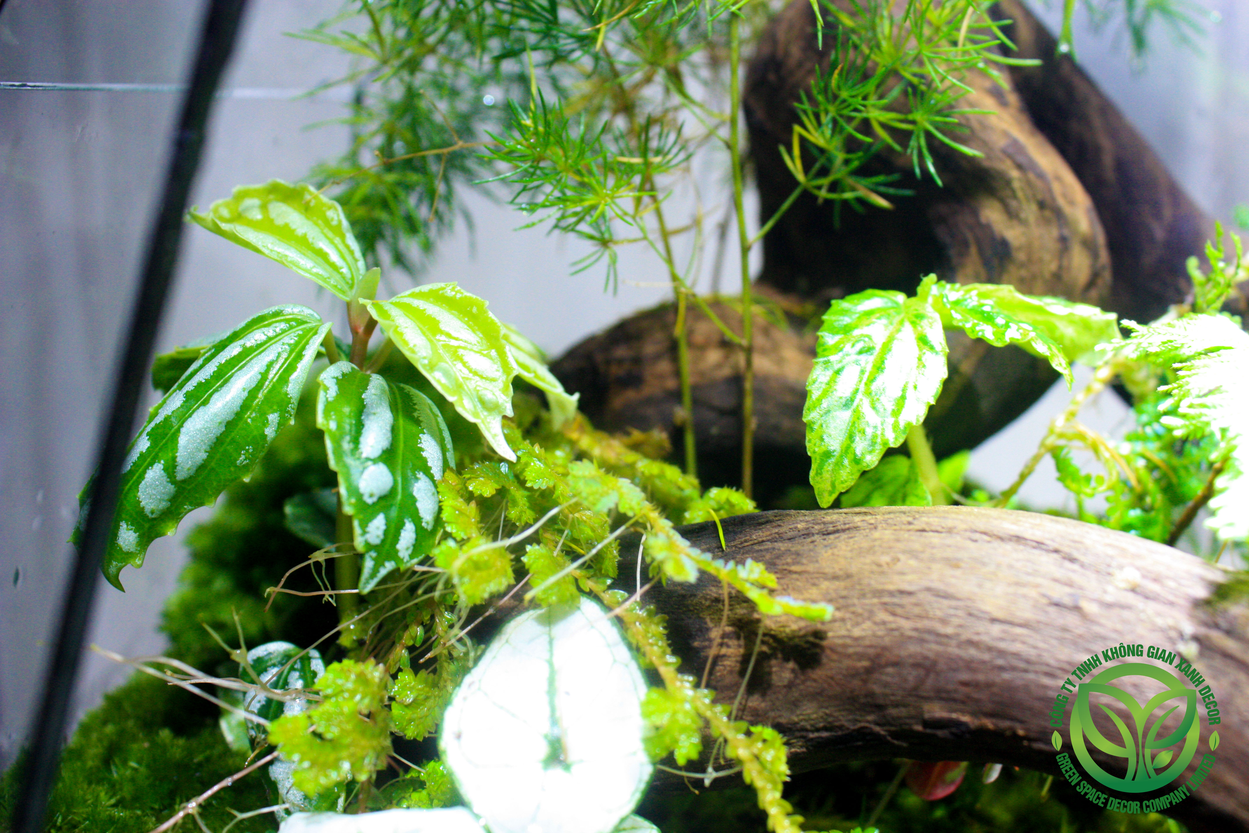 ? Cây sử dụng: Caladium, rêu mini, dương xỉ, fittonia, cây lá kẻ, moss ball, lũa tự nhiên.